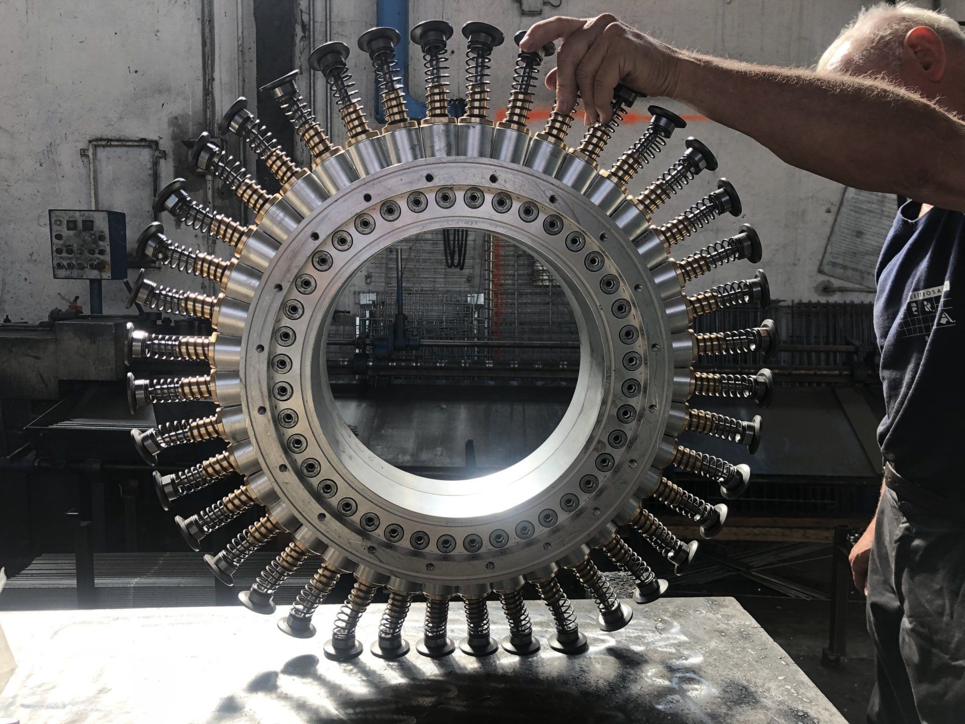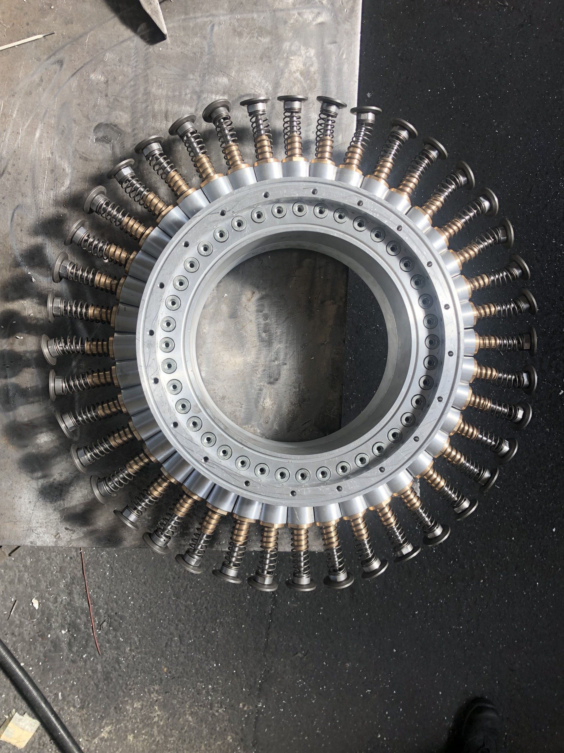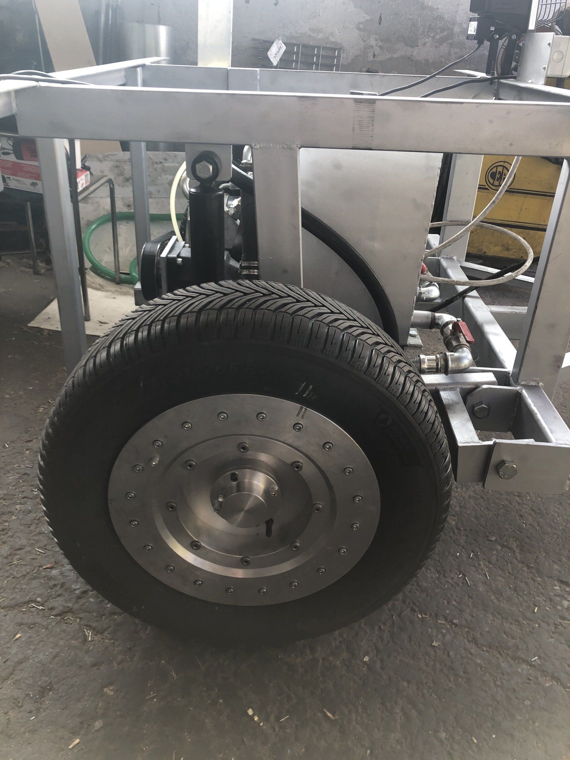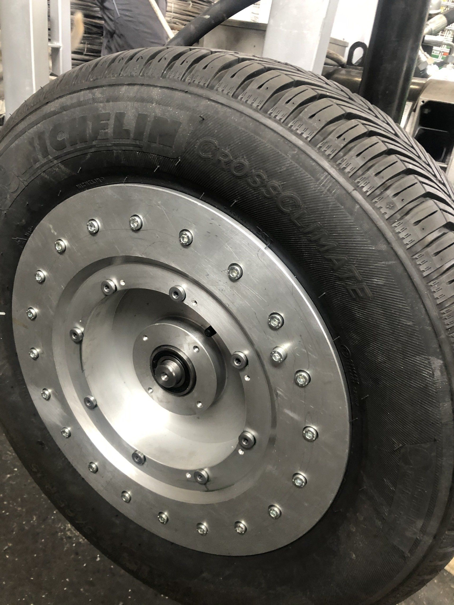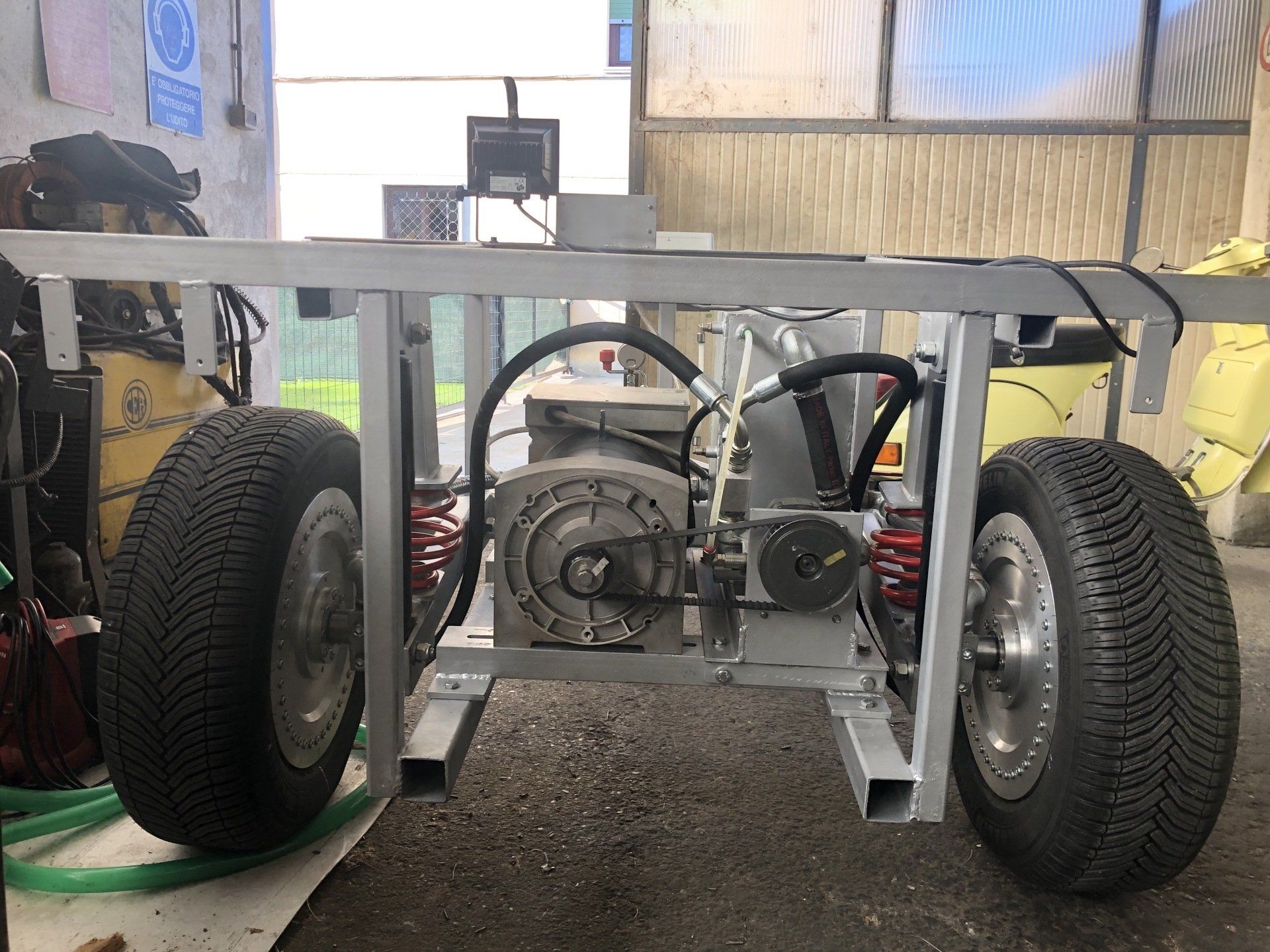 comprimiamo i pistoni all'interno del pneumatico stesso, i quali passando dal mozzo appositamente scanalato inviano un flusso continuo in grado di far girare un motore idraulico con solo 5/6 bar di pressione,